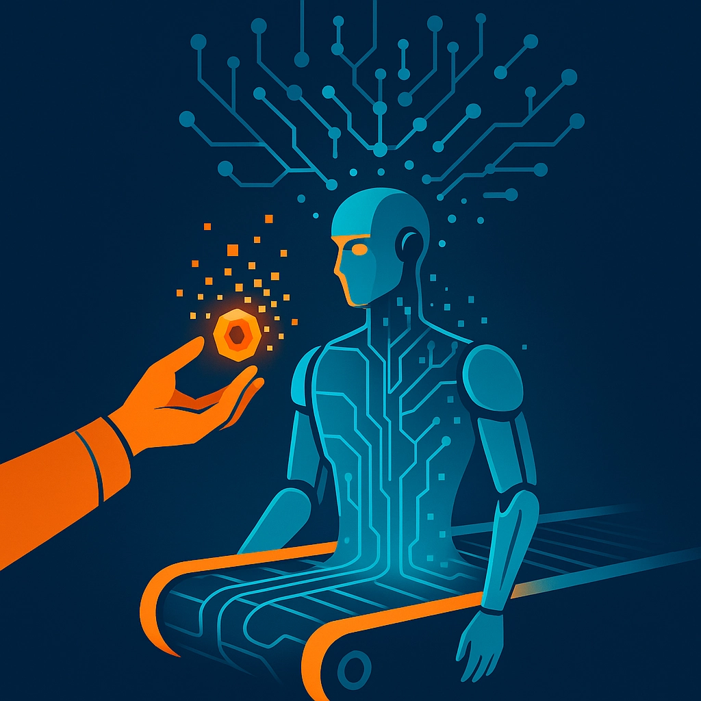 Un robot nuevo llega a la línea de producción, observa a un operario veterano durante dos turnos, formula un par de preguntas aclaratorias sobre artículos frágiles y, al tercer día, asume sin ruido las tareas pesadas y repetitivas. El trabajador humano se libera para labores de mayor valor, mientras la productividad sube sin interrupciones.
