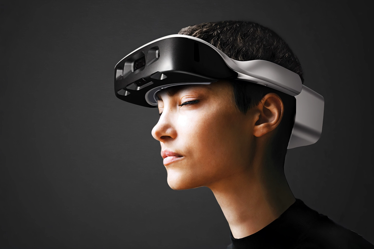 Las .Lumen no son unas gafas convencionales. Se trata de un headset similar a los dispositivos de realidad virtual, pero con un propósito radicalmente diferente: en lugar de proyectar imágenes, utiliza retroalimentación háptica mediante vibraciones sutiles en la frente del usuario, combinadas con audio direccional a través de altavoces con tecnología beamforming.